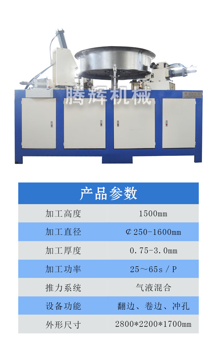 本文介紹的設(shè)備專用于軸流風(fēng)機(jī)外殼的翻邊沖孔機(jī),加工直徑范圍可達(dá)1600mm,該機(jī)器操作簡單,更換模具快捷,能耗低、效率高,一人操作即可完成風(fēng)機(jī)翻邊、卷邊、打孔的制作。(公司根據(jù)客戶需求,為客戶量身定制適合的設(shè)備,歡迎新老客戶咨詢了解)